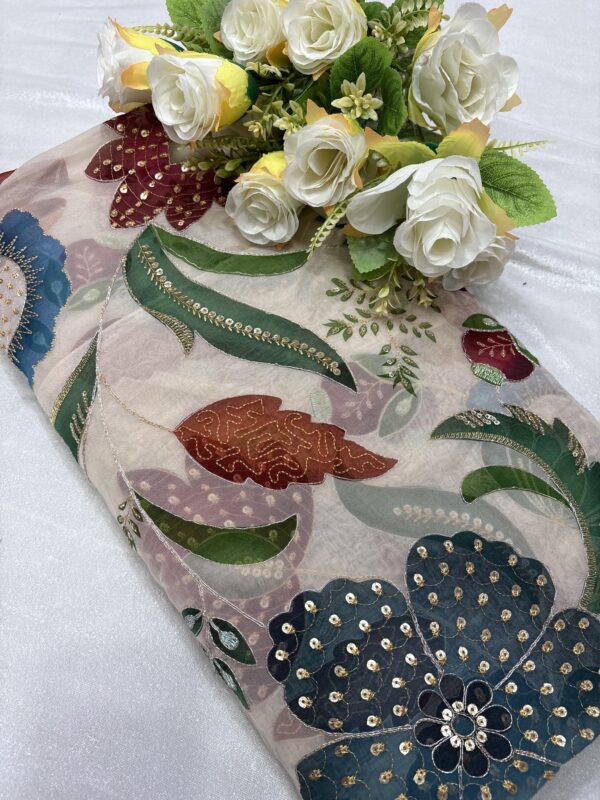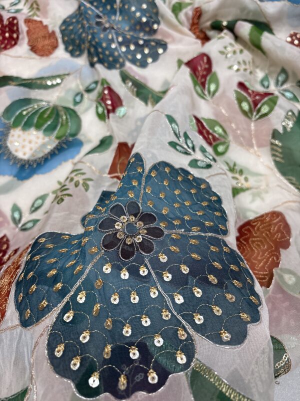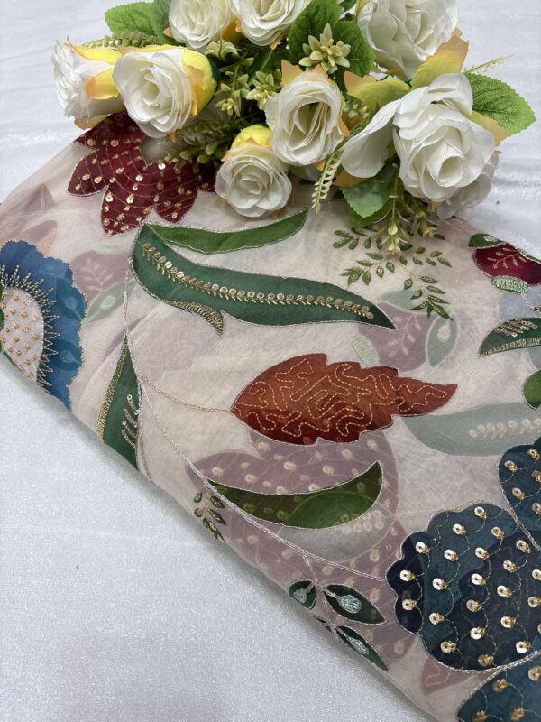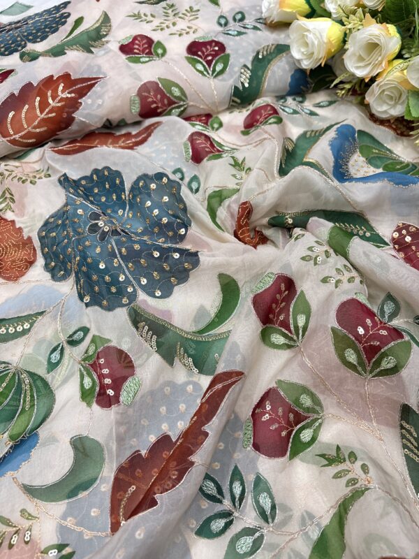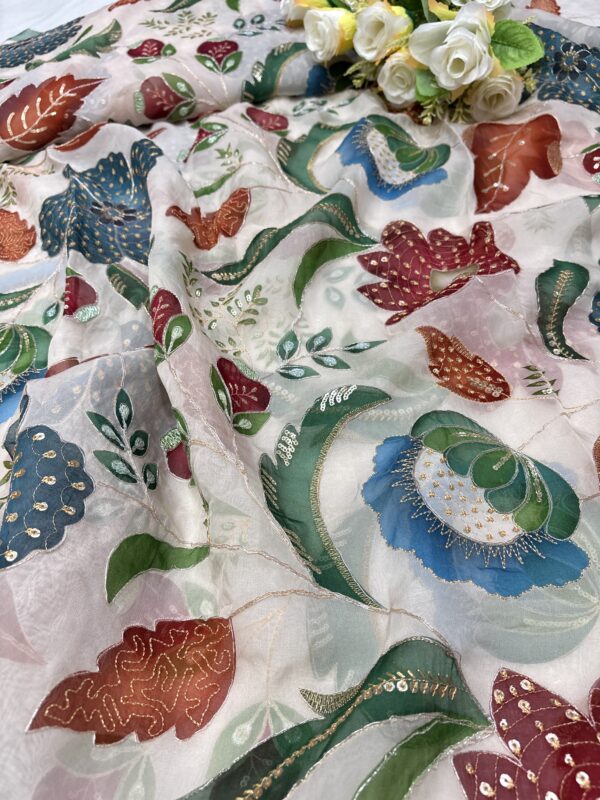 A perfect choice for bridal wear, party ensembles, and festive collections, this organza fabric adds a touch of sophistication with its floral elegance and rich embroidery work. 🌸