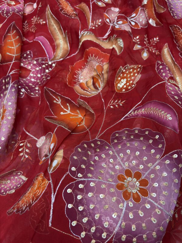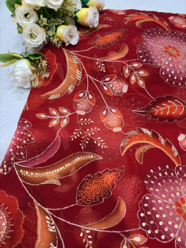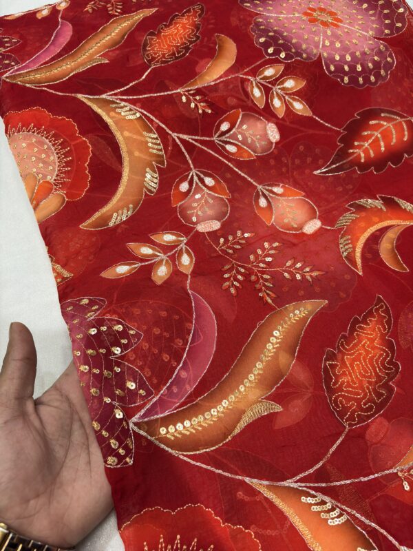 A perfect choice for bridal wear, party ensembles, and festive collections, this organza fabric adds a touch of sophistication with its floral elegance and rich embroidery work. 🌸
