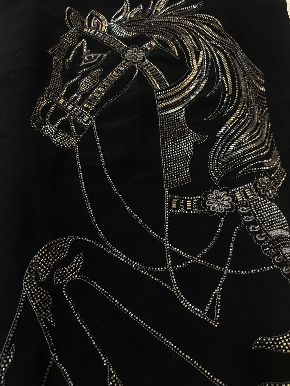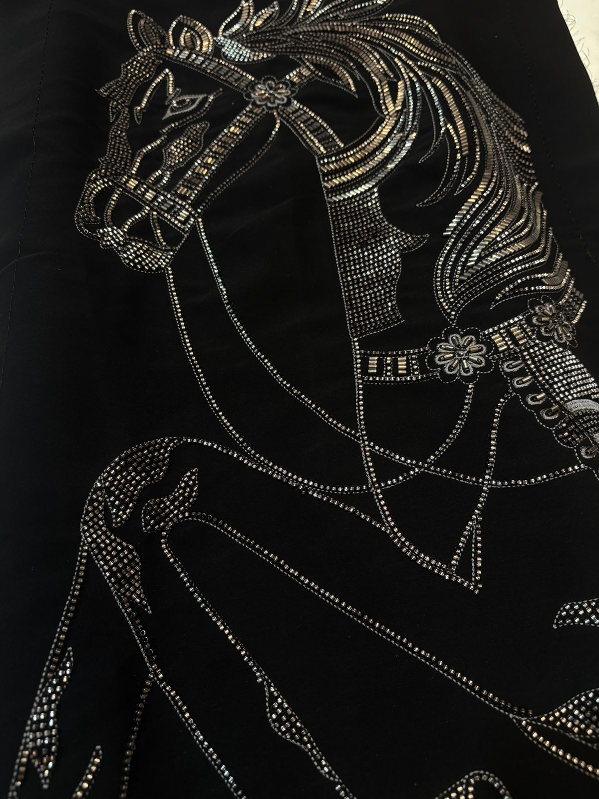 The highlight of the ensemble is its intricate handwork, which may include:
