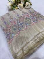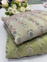 This exquisite Zari Tissue Lehenga fabric is a true epitome of luxury and tradition. Crafted on a rich zari tissue base, it features intricate heavy handwork detailing with delicate embroidery, sequins, and fine embellishments that bring a royal charm to every ensemble. The shimmering texture of zari tissue lends a graceful sheen, making it perfect for bridal and festive wear.