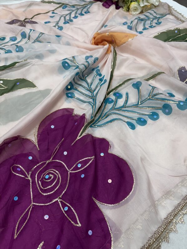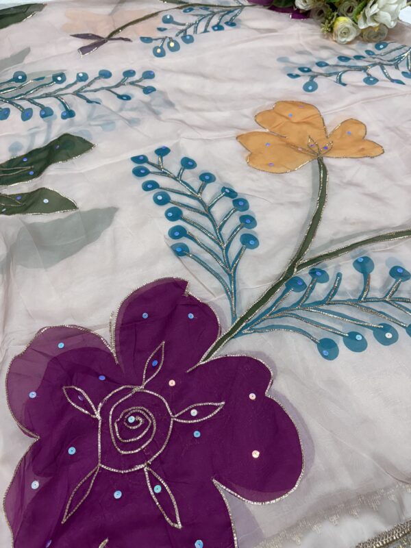 his elegant Organza Hand-Crafted Dupatta is a timeless piece that reflects sheer grace and sophistication. Crafted from premium organza fabric, it features a delicate, lightweight texture with a subtle sheen that adds a regal charm to any outfit. The dupatta is adorned with intricate hand-crafted details—fine embroidery, hand embellishments, or artisanal threadwork—that showcase skilled craftsmanship and attention to detail.